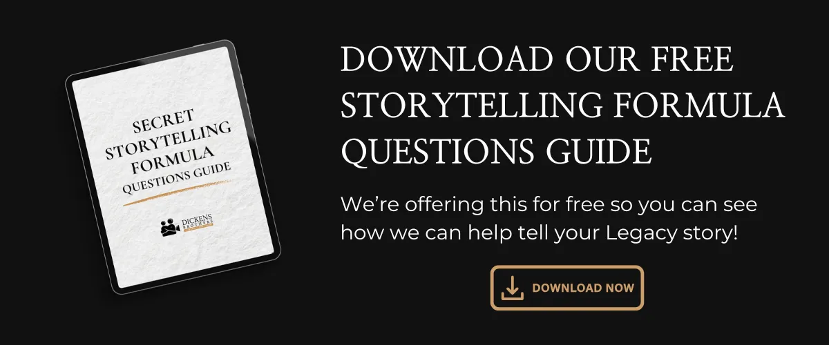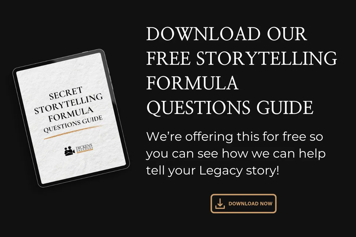 At Dickens Brothers, we've created the Legacy Reel, a unique service that helps you preserve your story, your life's values, lessons, and guiding principles captured through professionally guided interviews. Our team of expert filmmakers conducts guided interviews focusing on six key areas of life, health, wisdom, character, relationships, spiritual beliefs, and financial stewardship. We help you articulate what truly matters, ensuring your heirs understand not just what you're leaving behind. Below are some of our interview snippets.
